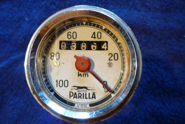 VDO Tacho Moto Parilla Durchmesser: 65mm. Durchmesser des Ausschnittes im Armaturenbrett: 58mm Gebrauchtes Originalersatzteil. Funktion nicht geprüft.